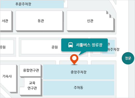 중앙주차장 셔틀버스 정류장 ↔