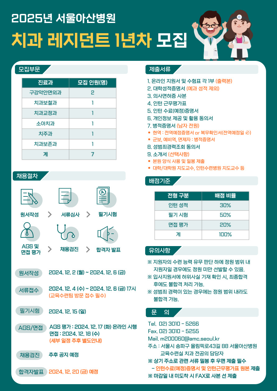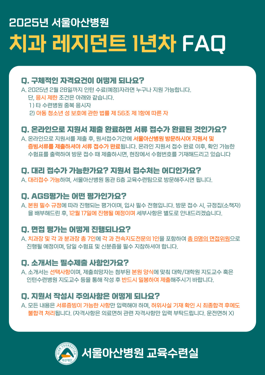 ▶ [2025년도 서울아산병원 치과 레지던트 지원 바로가기]
