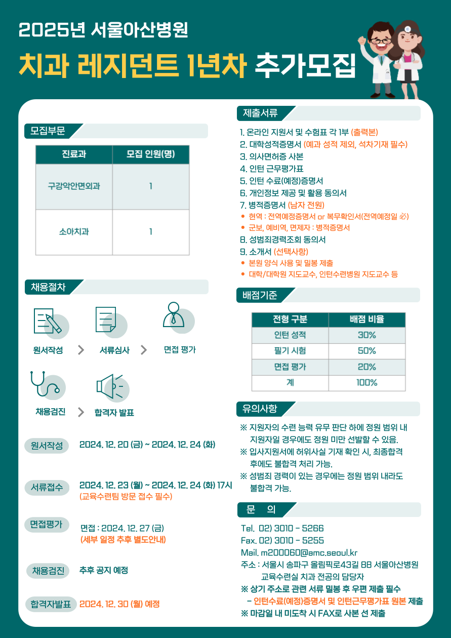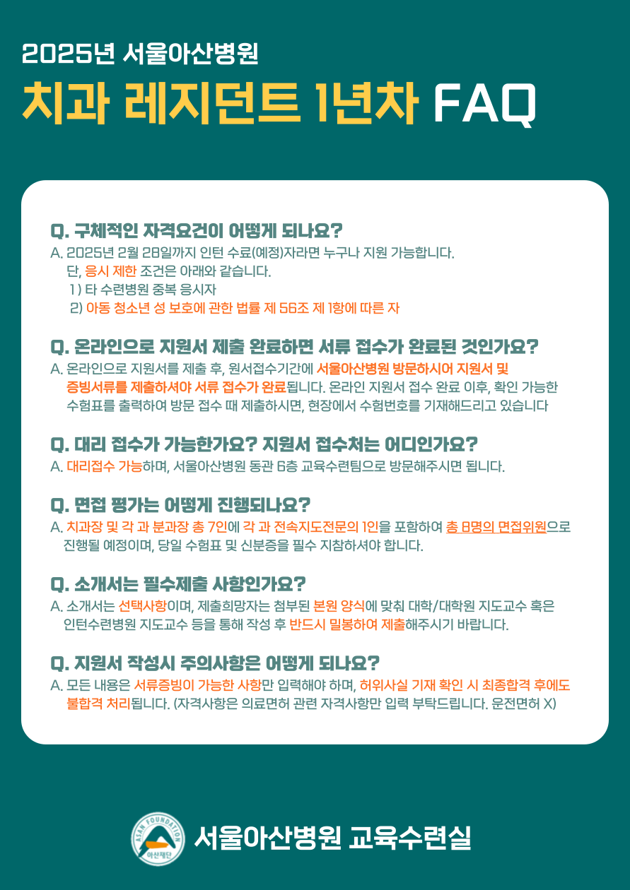 2025년도 치과 레지던트 1년차 추가모집 | ||